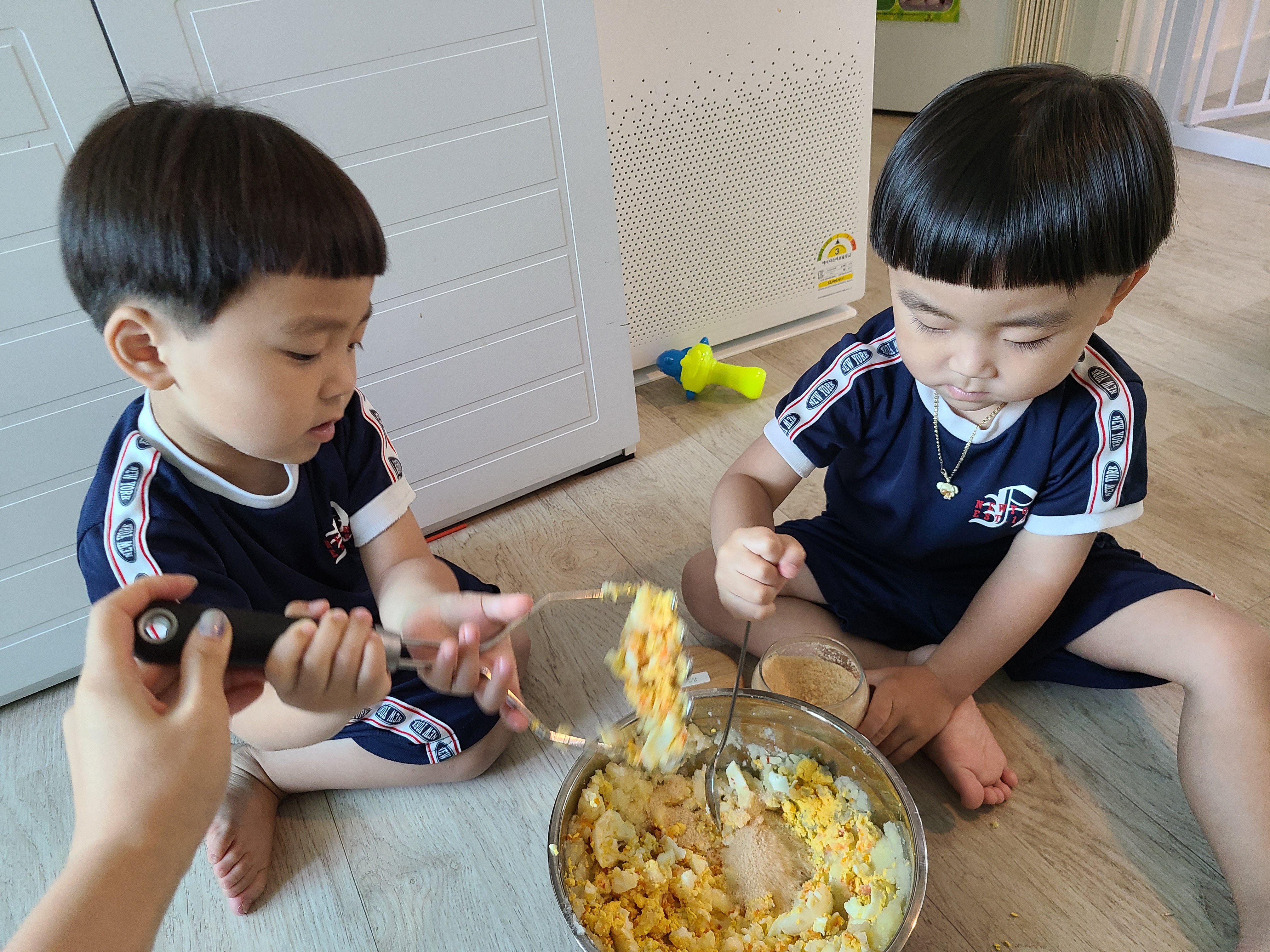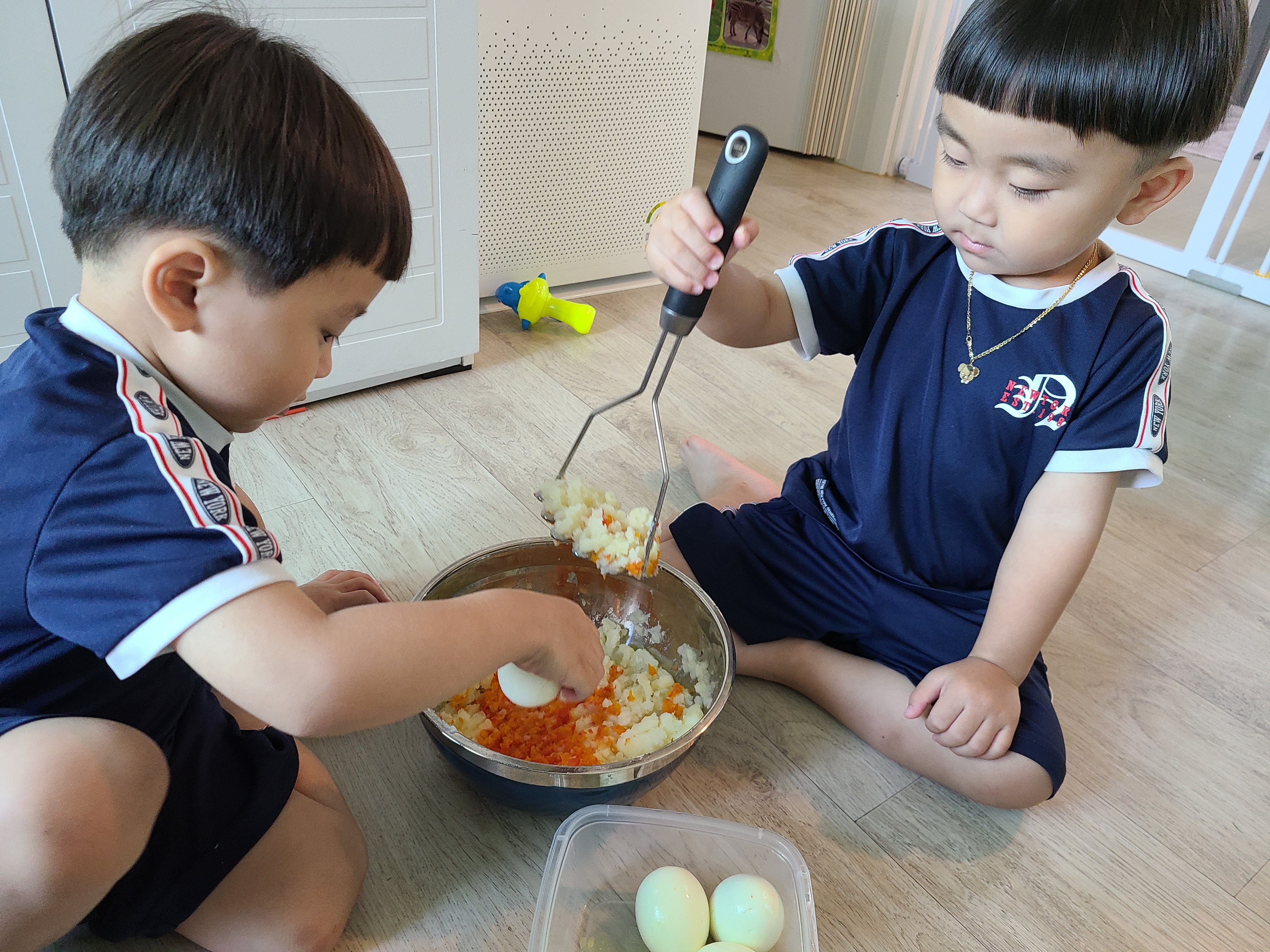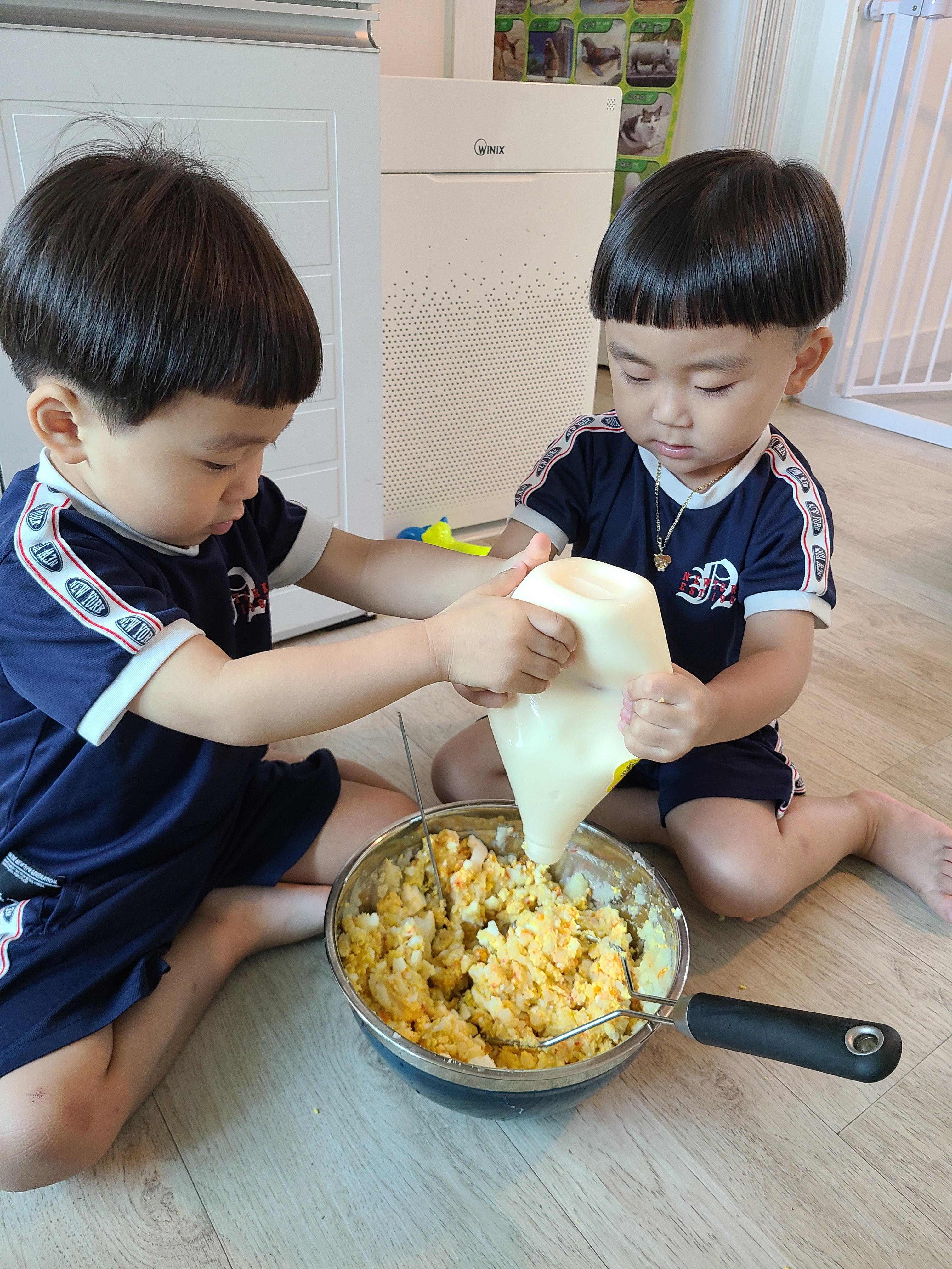 통통이들이 손수 감자도 으깨고 달걀도 으깨고