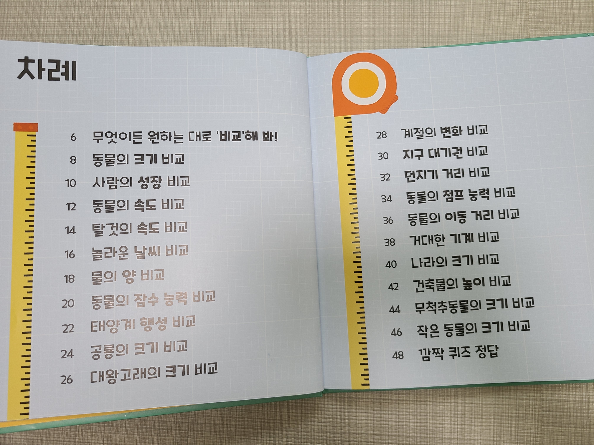 (목차에도 나와있듯이 동물,사람,곤충부터 우주 기계까지 비교가 한눈에 되도록 나와있어요)