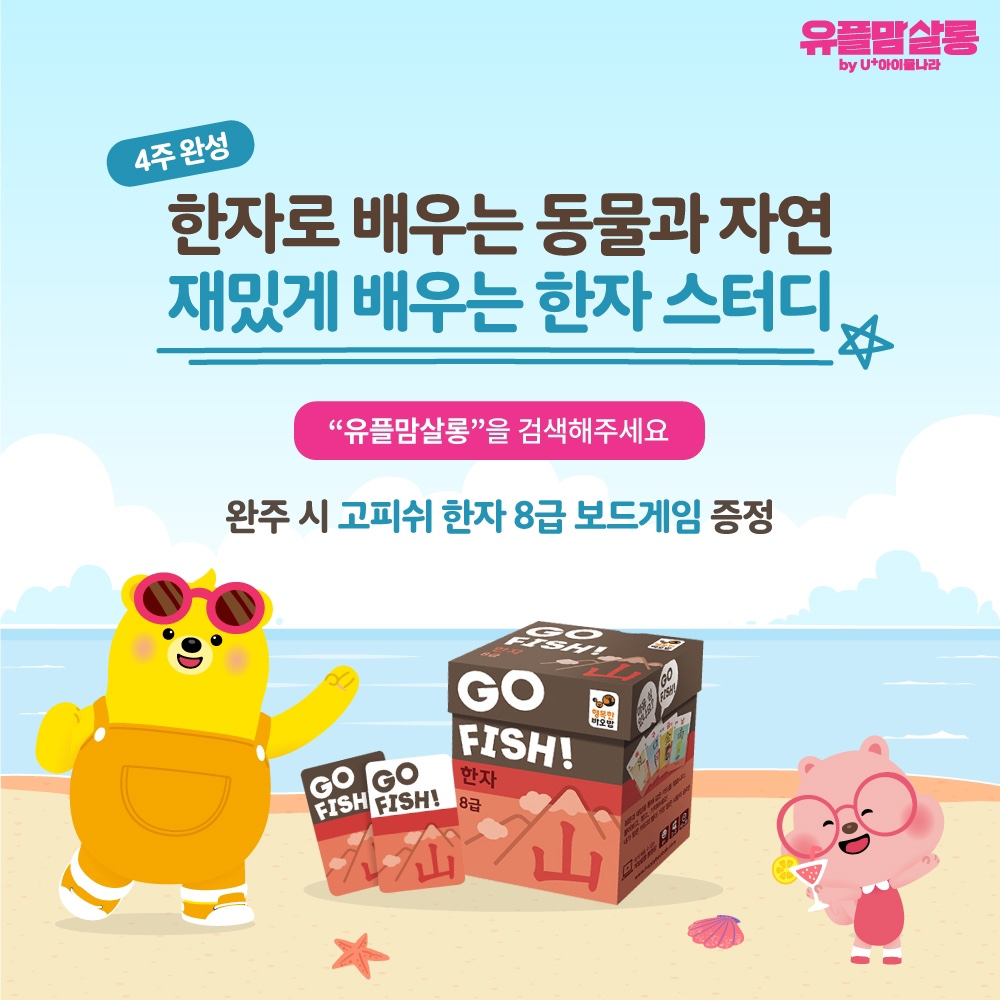 <한자로 배우는 동물과 자연> 스터디를 4건 완주한 경우 <고피쉬 한자 8급 보드게임>을 선물로 드립니다. 고피쉬 한자 보드게임은 즐겁게 게임을 하며 한자를 익힐 수 있는 교육용 게임입니다. 게임을 하며 놀면서 한자를 익힐 수 있어요.