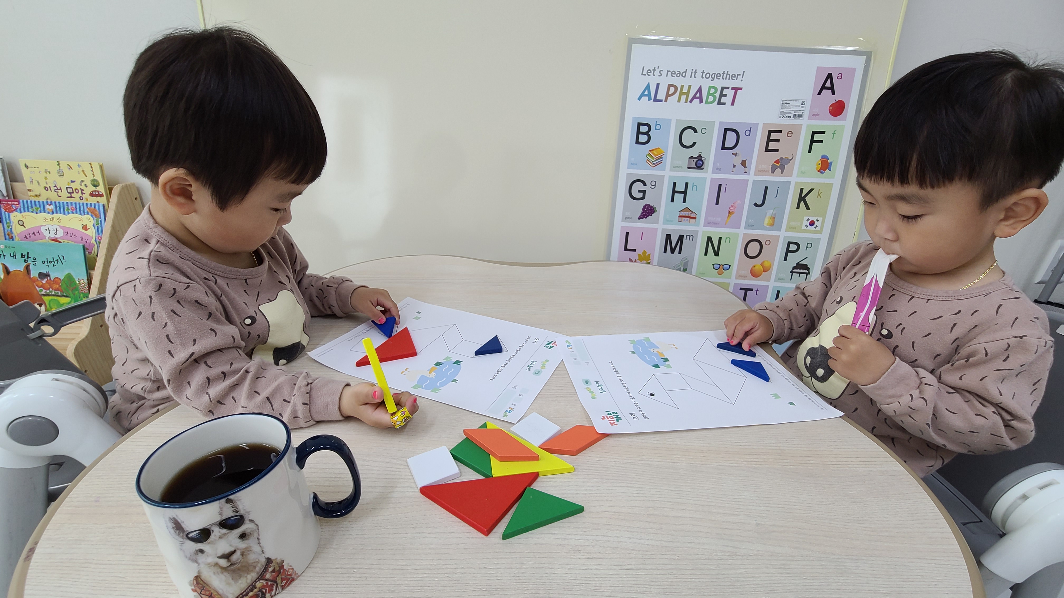 정민이가 칠교놀이를 잘 따라와주고 있는것 같다