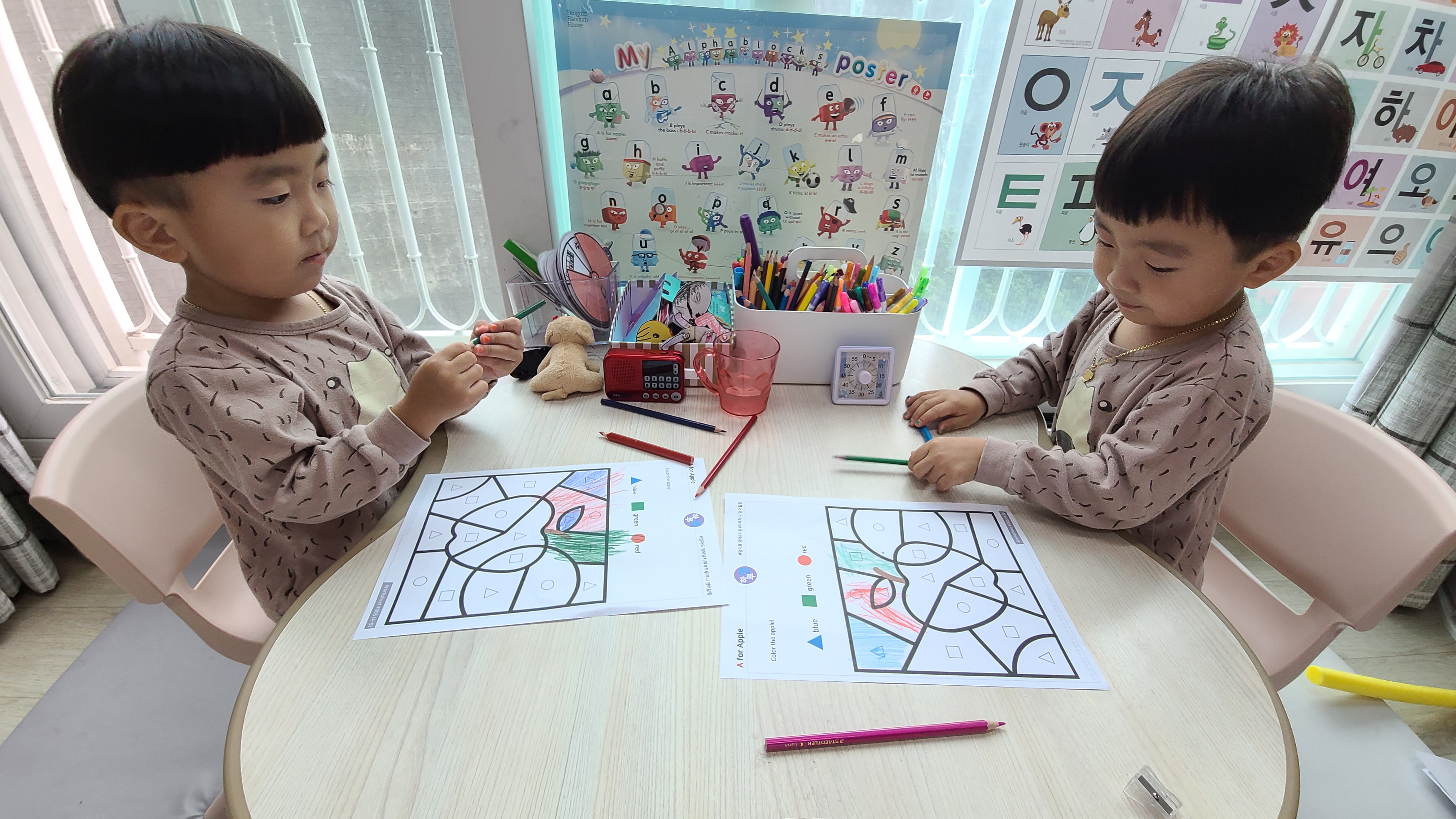 하루영 카페에서 34개월 둥이들이 쉽게 할수있는게 뭐가 있을까 찾다가